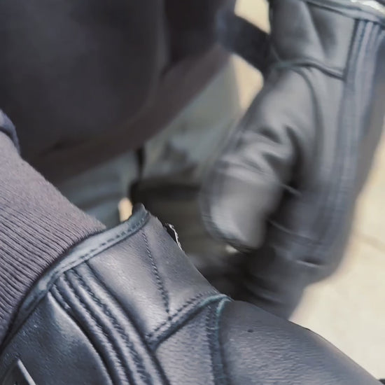 Crafted of Leather, these Gloves feature embossing on top of hand. The touch sensitive technology allows you to use any standard touchscreen device to complete the pair.