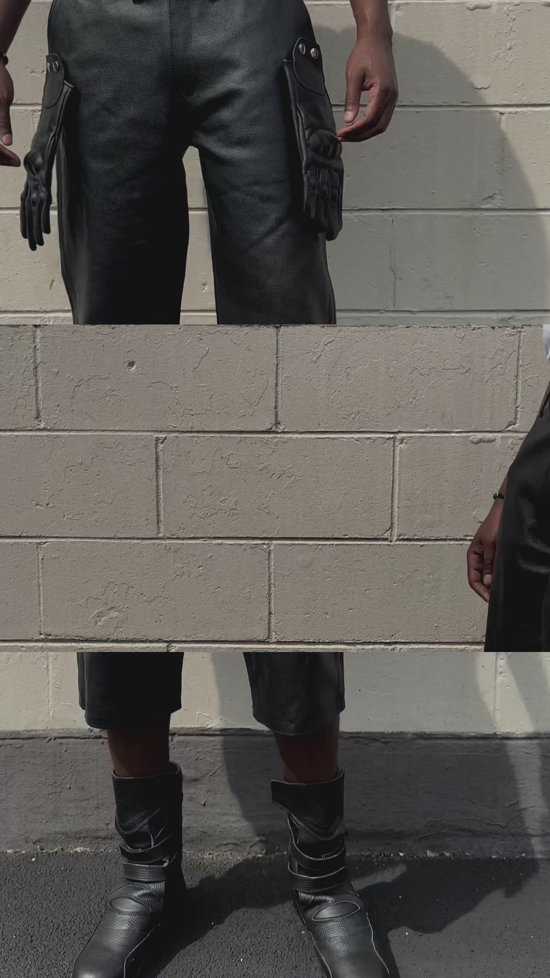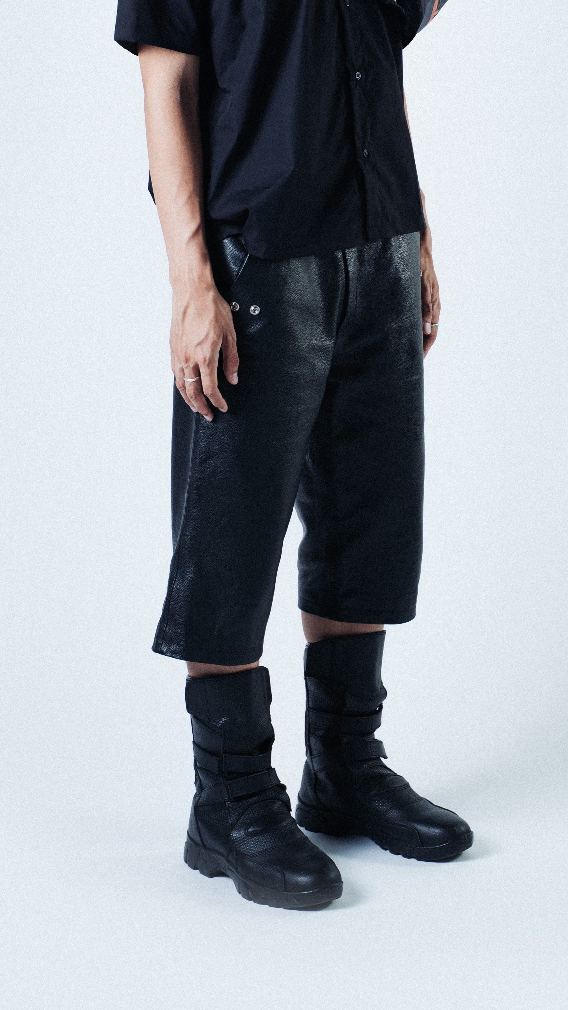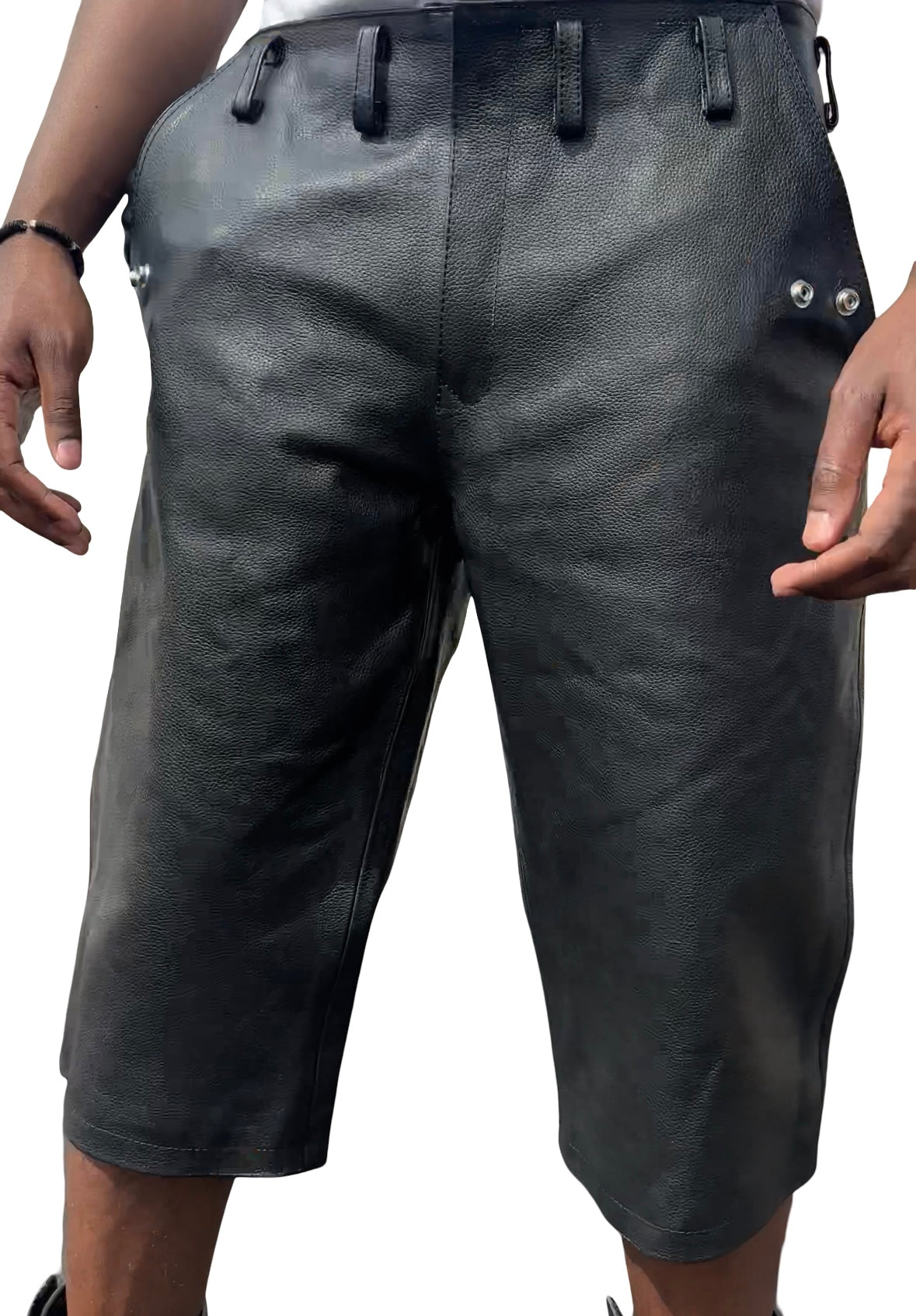 Full-Grain Leather Extended Length Shorts. 100% Luxury Quality Crafted with a blacksmith’s archetype, durable lining, and tapered leg structure that is below the knee